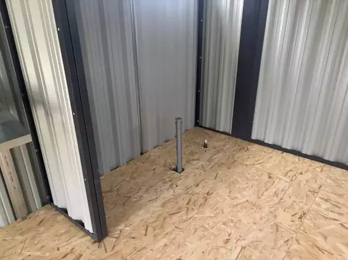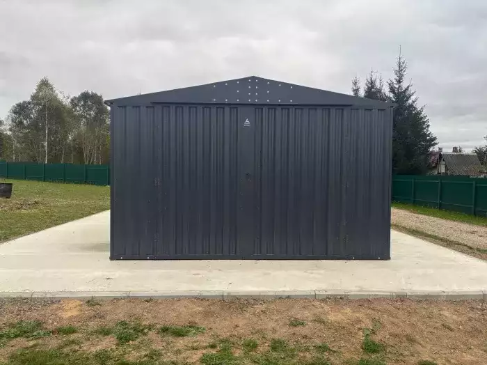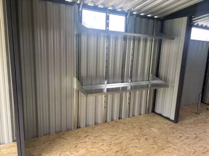 Нами была изготовлена конструкция размером 3,2 х 2,6 х 2,4 м с двускатной крышей в нестандартной комбинации цветов оранжевого RAL 1037 для основных элементов и антрацитово-серого RAL 7016 для фасонных элементов и крыши.