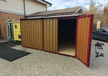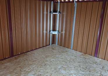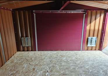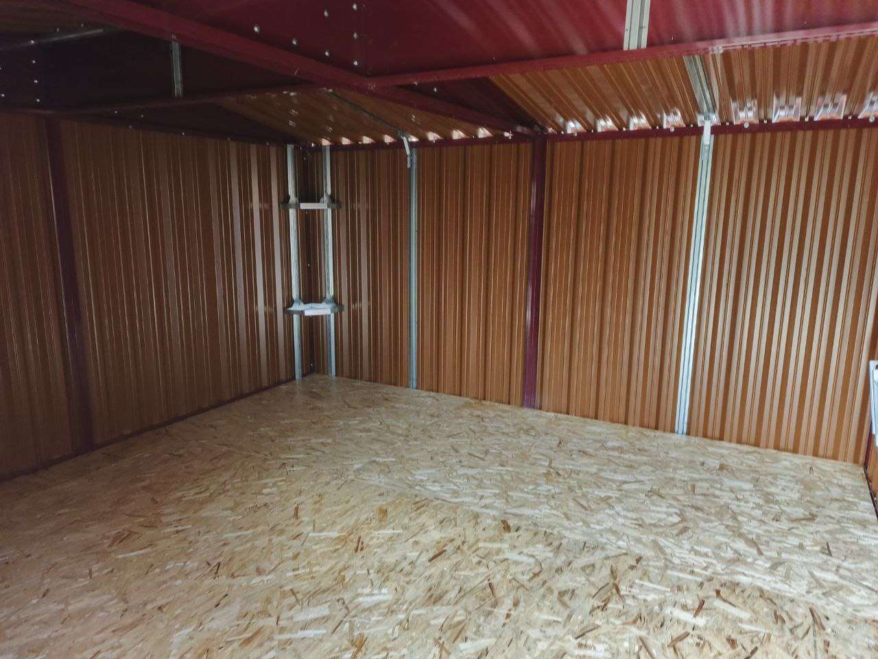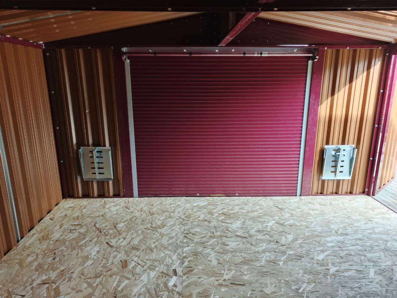 Дополнительно гараж оборудован двумя угловыми стеллажами, пандусами и дополнительной входной дверью по боковой стороне.