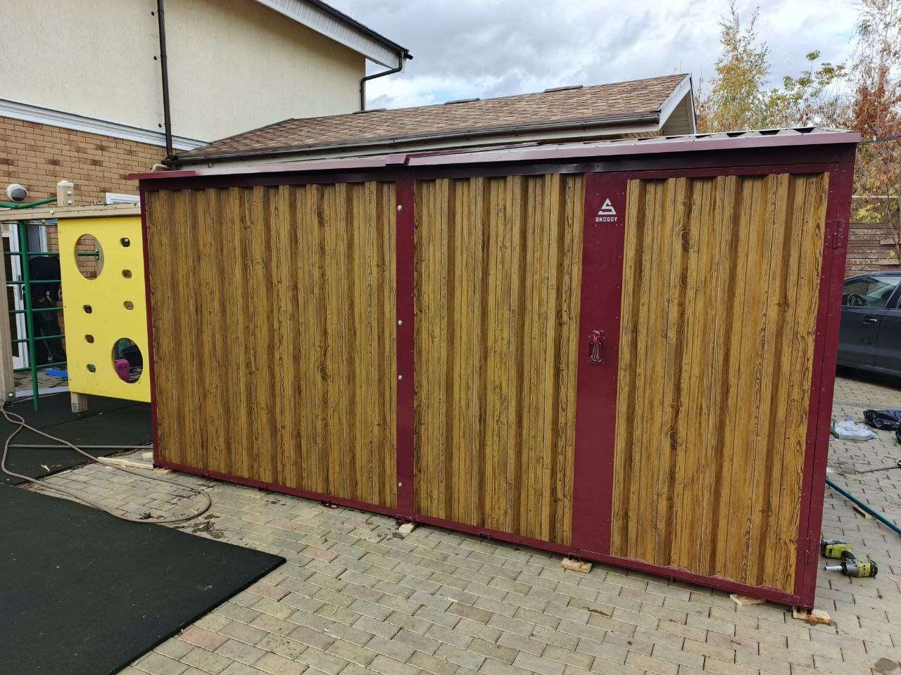 Проект: гараж 4 х 4 м для хранения автомобиля в комбинированной расцветке.