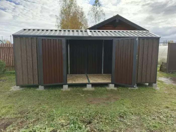 Проект: хозблок 6 х 3 х 2,45 м для хранения хозяйственных вещей в комбинированной расцветке.