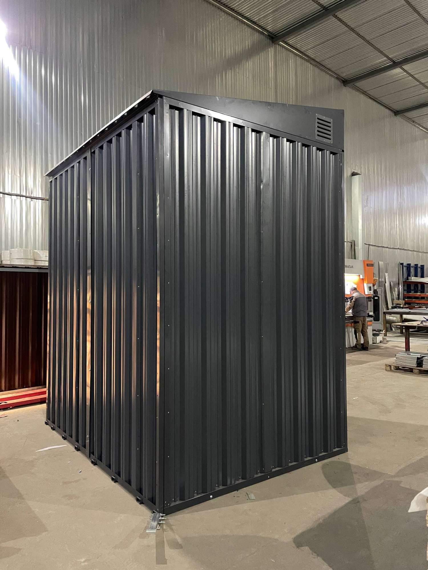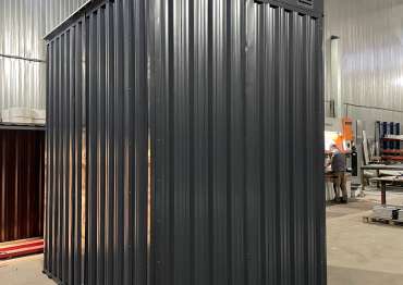Проект: хозблоки индивидуального размера для хранения оборудования в графитовом цвете с нанесением принта.