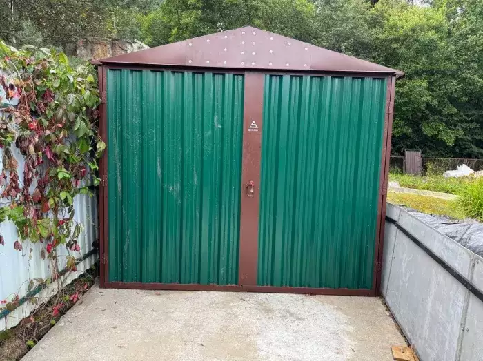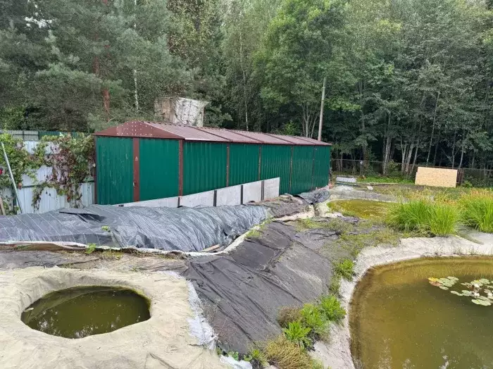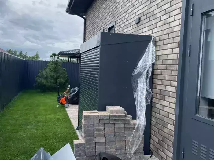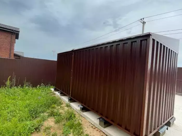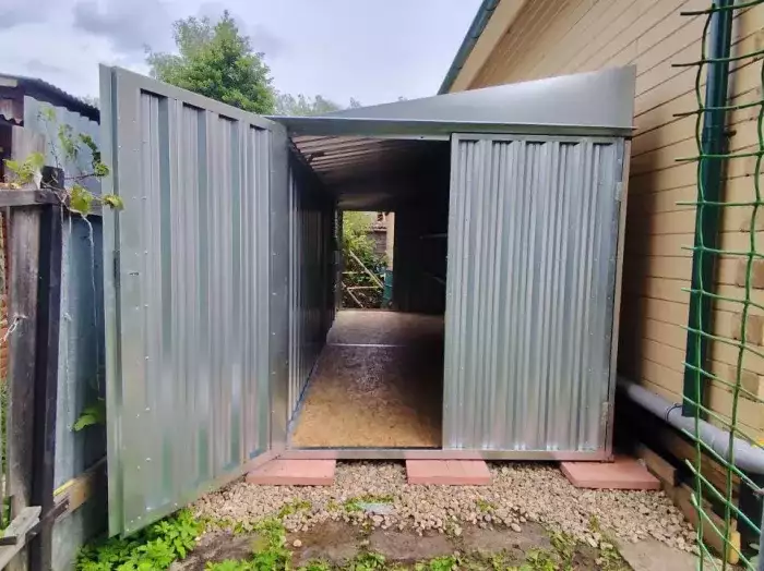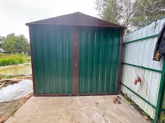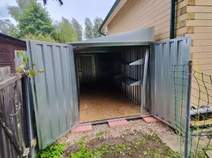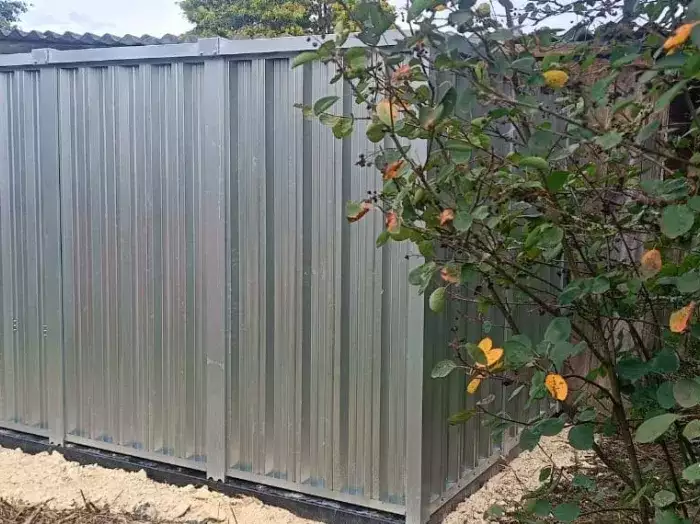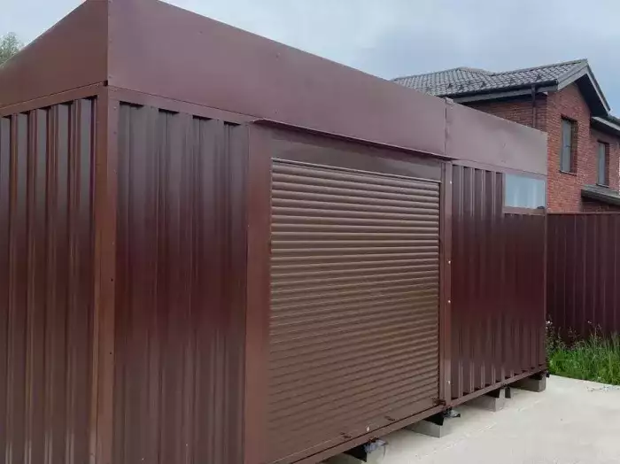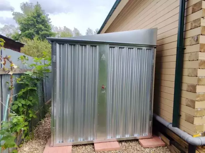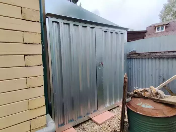 Пространство для установки постройки было ограничено, устанавливался хозблок между забором и деревом.