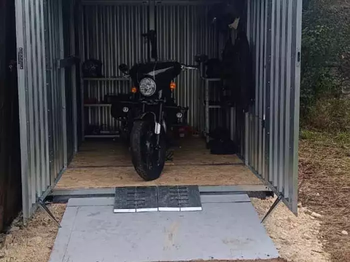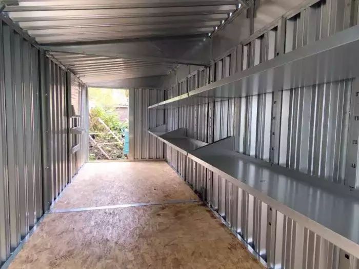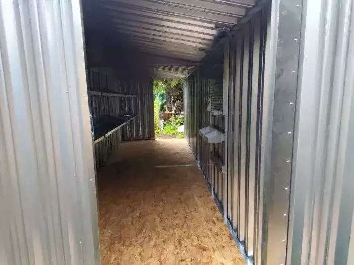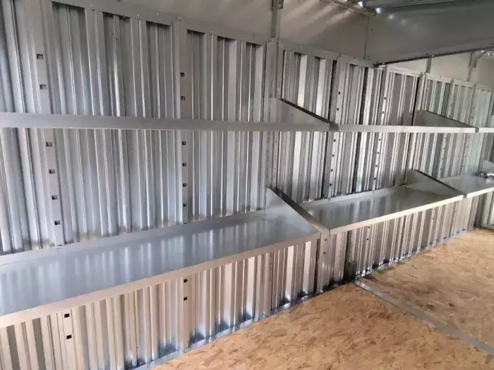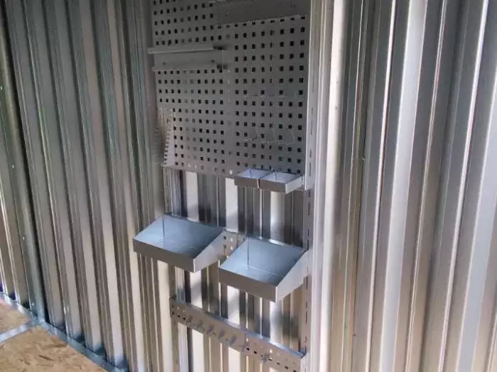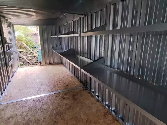 Дополнительно, по желанию заказчика, хозблок укомплектовали двумя системами хранения шин и прямым стеллажом.