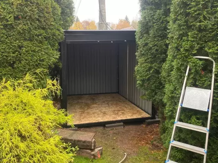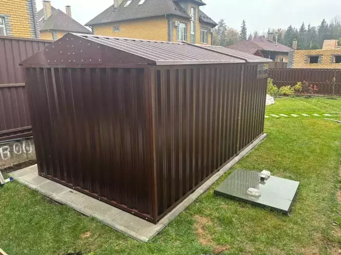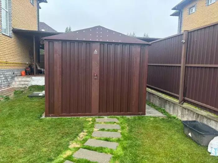 Доставляли хозблок на участок заказчика манипулятором в разобранном виде. Нашими специалистами предоставлялась услуга по сборке изделия. Справились за 4 часа.