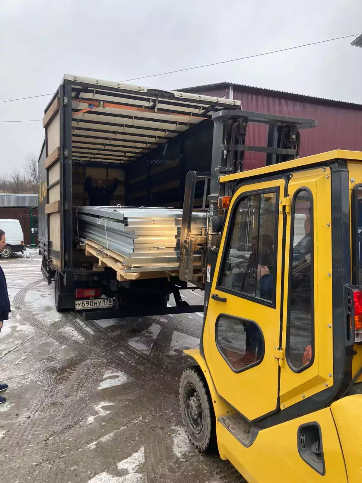 При помощи минипогрузчика мы перенесем контейнер в ваше транспортное средство.