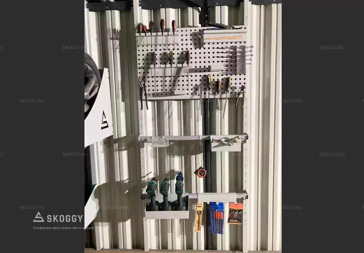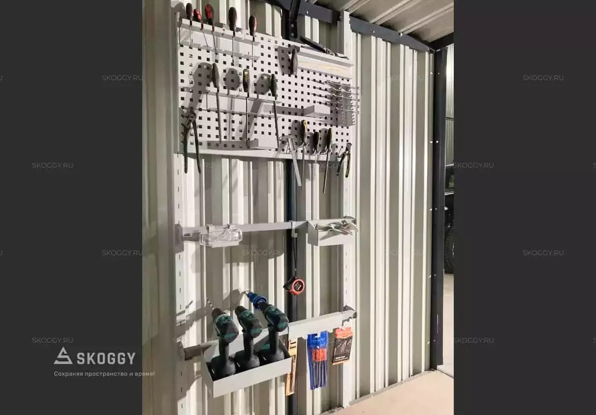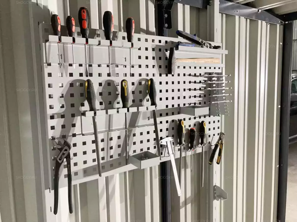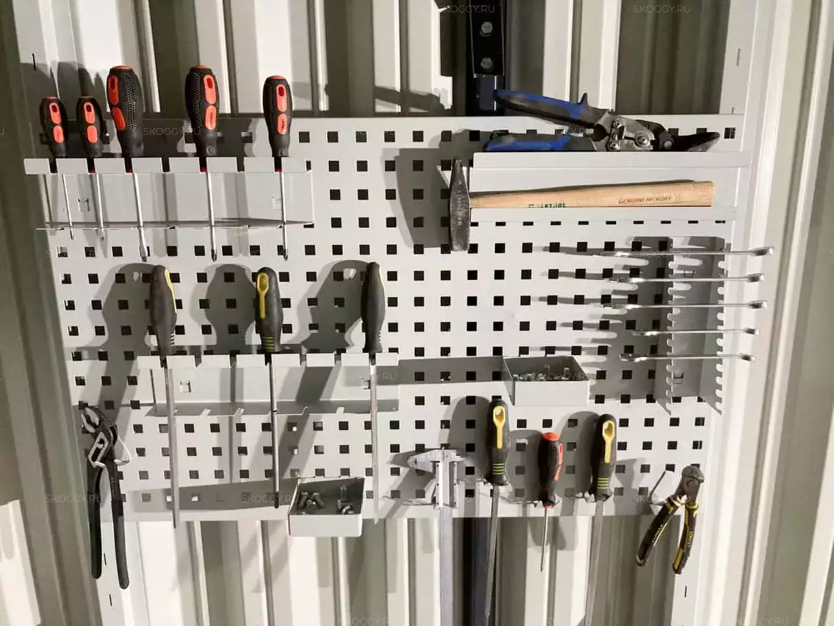 Панель инструментальная SKOGGY поможет вам экономить место в гараже, содержать в порядке и быстро находить необходимые инструменты и приспособления. Система изготовлена из прочной листовой стали, имеет порошковое покрытие и устойчива к агрессивным внешним факторам.