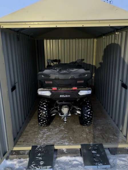 Вы также можете смело использовать контейнер как гараж, разместив в нем мотоцикл или даже два, квадроцикл, снегоход и т.д. Металлический контейнер без труда выдержит даже кроссовер!