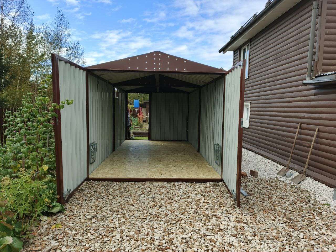Проект: гараж 6 х 3 х 2,69 м для хранения автомобиля в шоколадно-коричневом цвете.